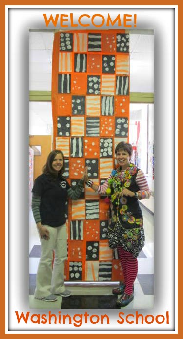 Now let me take you up and down the hallways of the building to see so many delightful examples of what is possible.... with young students and dedicated teachers on a mission!! These colors and patterns are more in the style of my first book, "You're Wonderful."